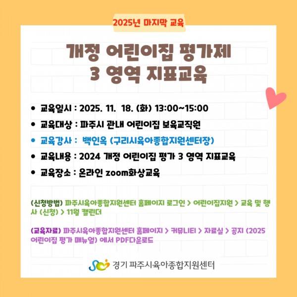 | 장소 | 온라인 zoom 화상교육 | 대상 | 파주시 관내 어린이집 원장 및 보육교직원 |