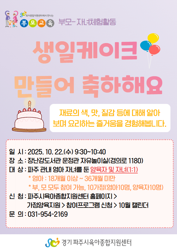 [부모자녀 체험] '생일 케이크 만들어 축하해요' (18~36개월미만)