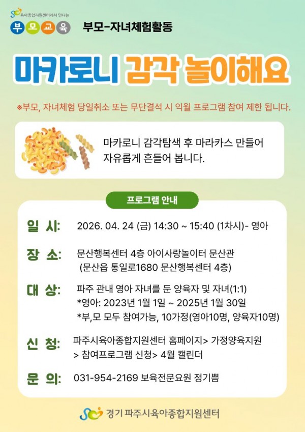 [부모자녀 체험] '마카로니 감각놀이해요' (영아)