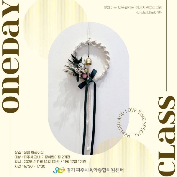 | 장소 | 신청어린이집 | 대상 | 파주시 관내 가정어린이집 1기관, 보육교직원 10명 |