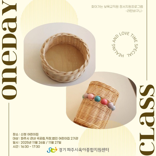 | 장소 | 신청어린이집 | 대상 | 파주시 관내 국공립,직장,법인 어린이집 1기관, 보육교직원 10명 |