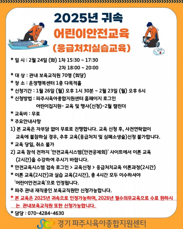 2025년(귀속)/2026년도 어린이이용시설 종사자 안전교육(응급처치실습)(운정) 2차