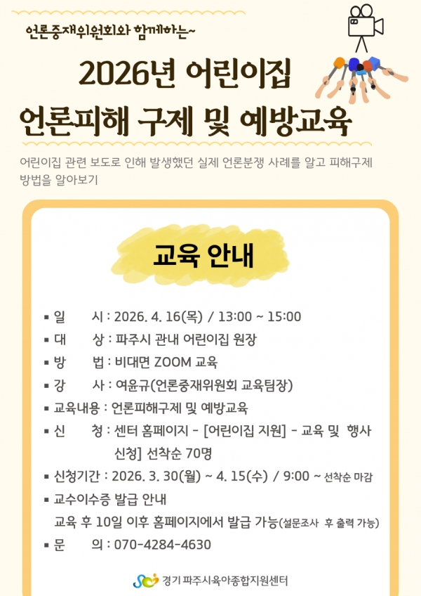 2026년 어린이집 언론피해 구제 및 예방교육