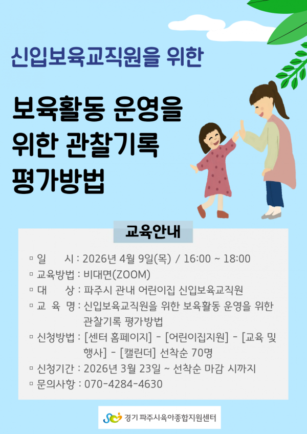 | 장소 | 비대면(zoom)교육 | 대상 | 파주시 관내 어린이집 신입보육교사 |