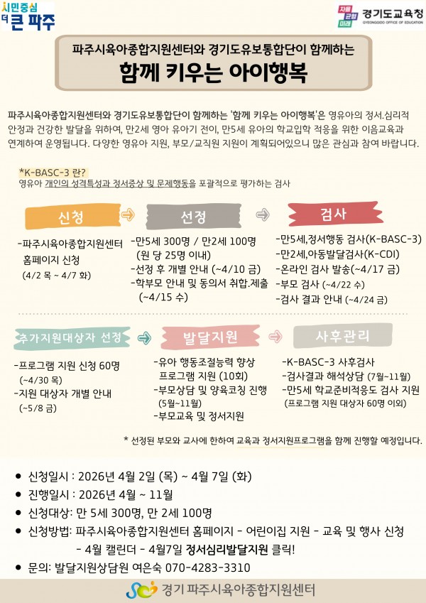 <파주시육아종합지원센터와 경기도유보통합단과 함께하는 영유아 정서심리발달지원사업>