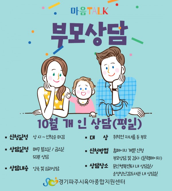 - 부모상담 시 아이의 동반이 어려우나, 부득이하게 함께해야 할 경우에는