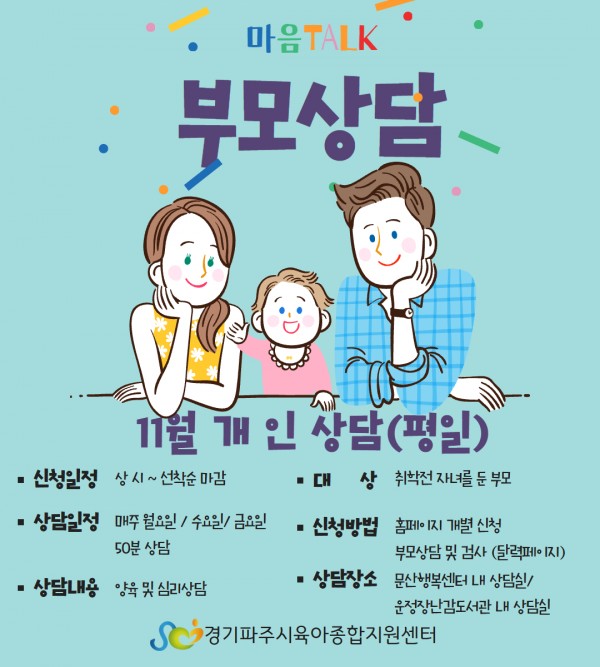 - 부모상담 시 아이의 동반이 어려우나, 부득이하게 함께해야 할 경우에는