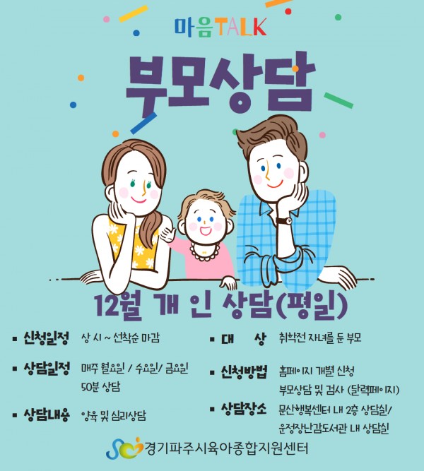 - 부모상담 시 아이의 동반이 어려우나, 부득이하게 함께해야 할 경우에는