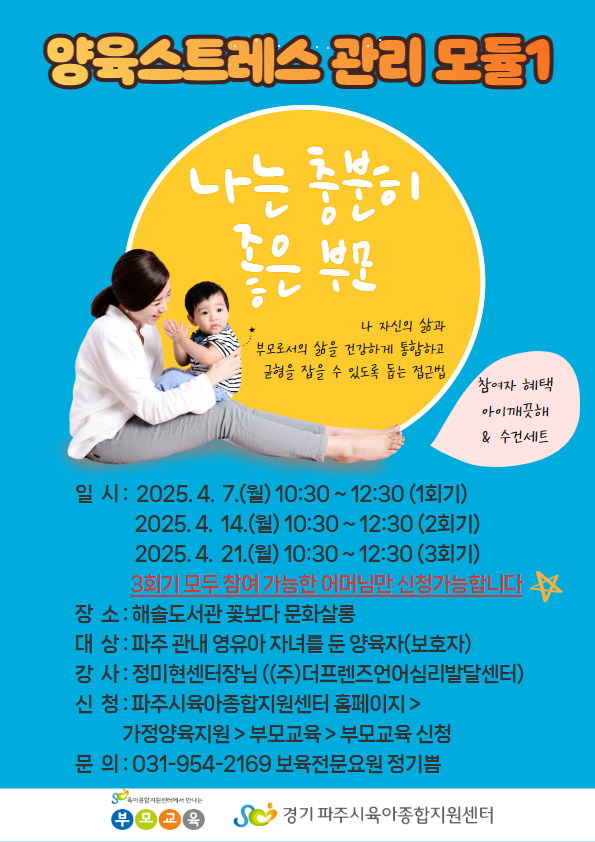 | 장소 | 해솔도서관 꽃보다 문화살롱 | 대상 | 파주 관내 영유아 자녀 양육자 |