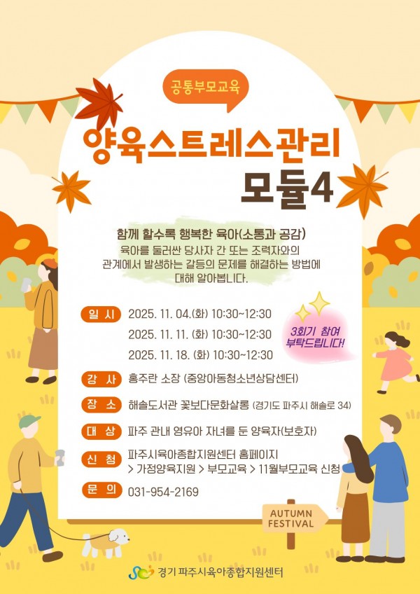 | 장소 | 해솔도서관 꽃보다문화살롱 | 대상 | 파주 관내 영유아 자녀를 둔 양육자 |