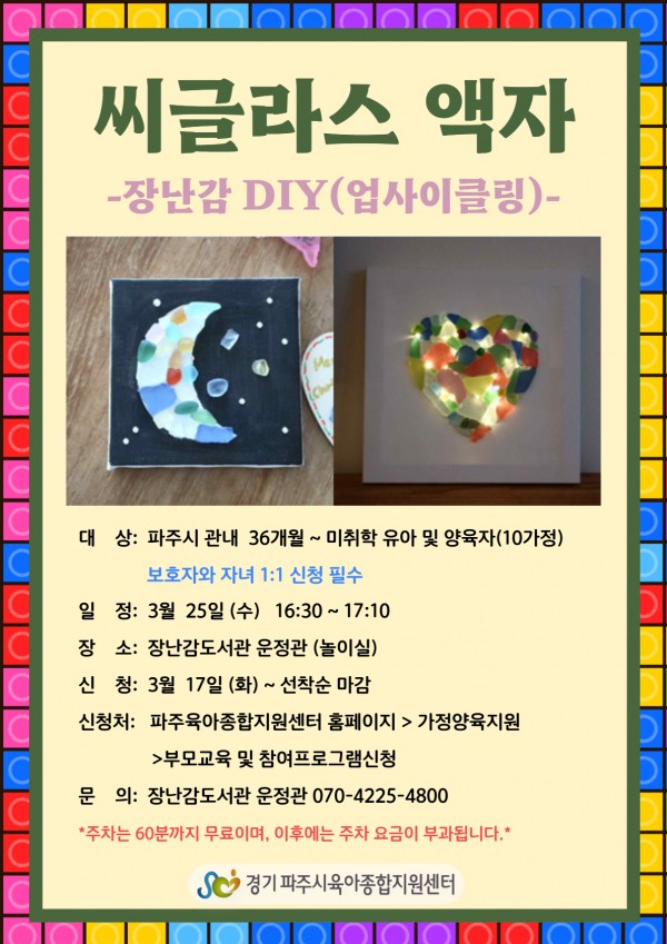 | 장소 | 장난감도서관 운정관(놀이실) | 대상 | 파주시관내 36개월 ~ 미취학 영유아 및 양육자 |