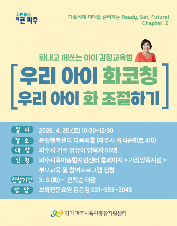 | 장소 | 운정행복센터 다목적홀 | 대상 | 파주 관내 영유아 양육자 |