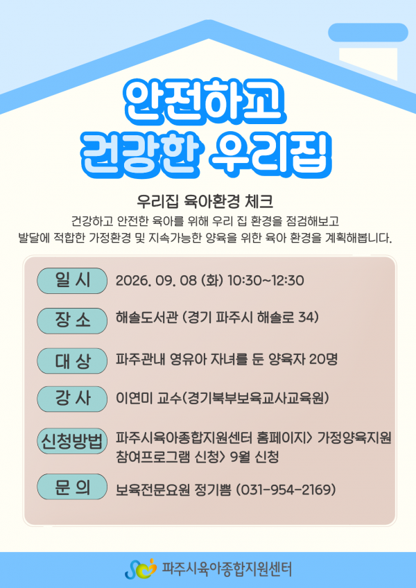 | 장소 | 미정 | 대상 | 파주관내 영유아 자녀를 둔 양육자 20명 |
