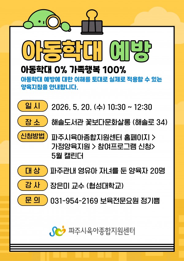 4. 부모 대상 교육으로 자녀와 동반 참여가 불가하오니 양해부탁드립니다.