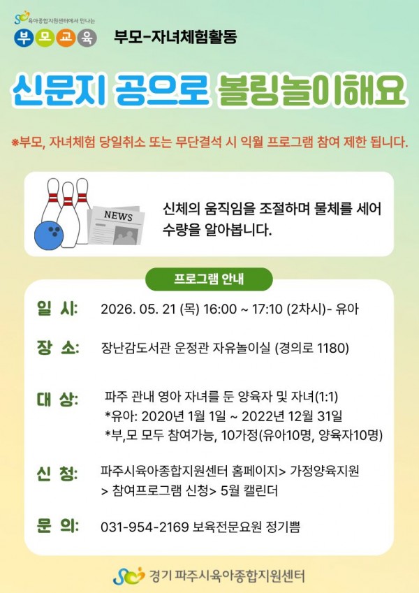 [부모자녀 체험] '신문지 공으로 볼링 놀이해요' (유아)