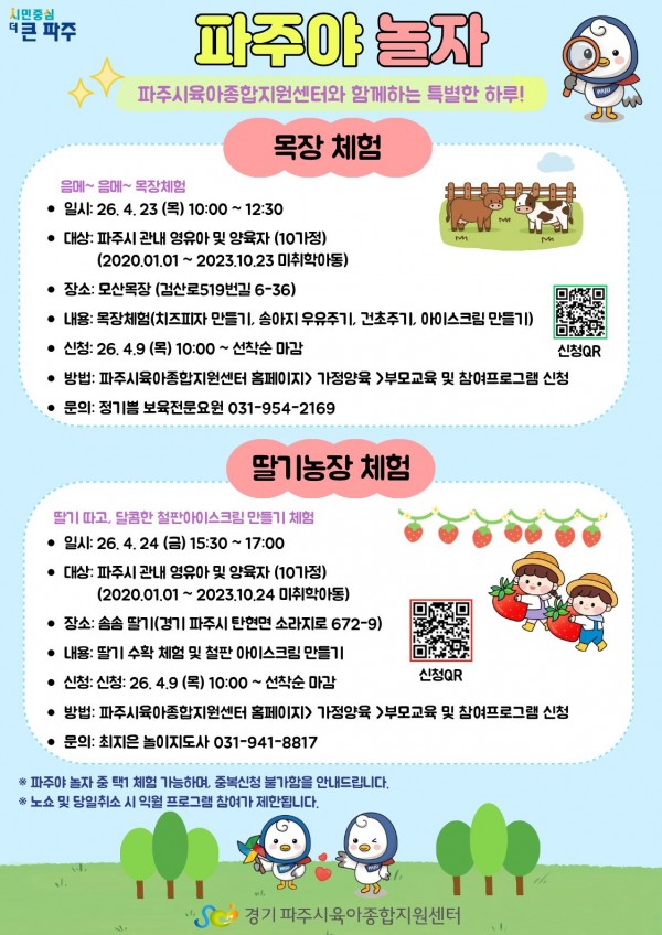 2026년 파주야 놀자 [목장 체험] 많은 관심과 참여 부탁드립니다.