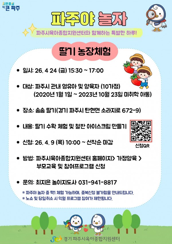 2026년 파주야 놀자 [딸기 농장체험] 많은 관심과 참여 부탁드립니다.
