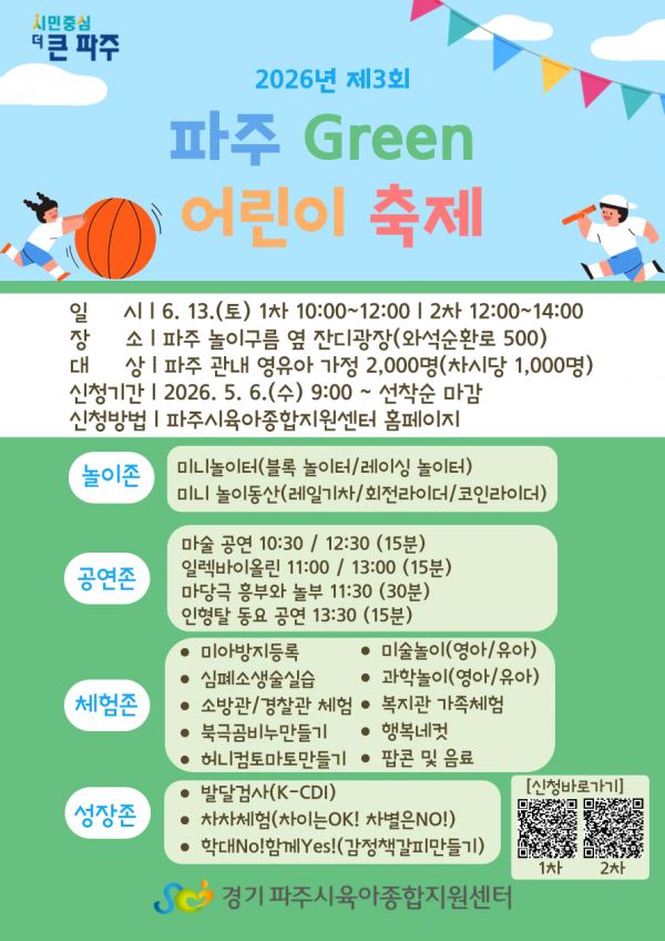 - 다음글2026년 제3회 파주 Green 어린이 축제(예정) 1차시 26.04.13