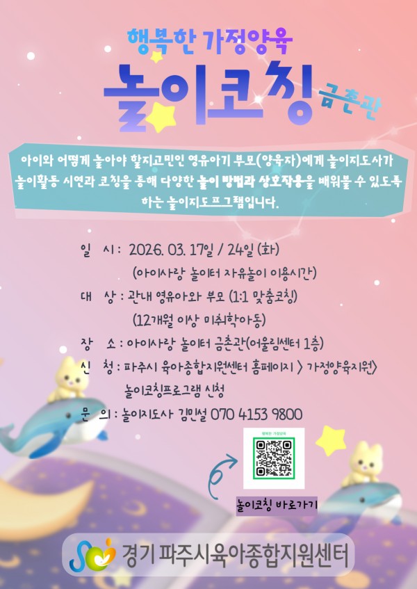 - 다음글[문산관][놀이코칭] 마중물 마음Ⅱ 26.01.15