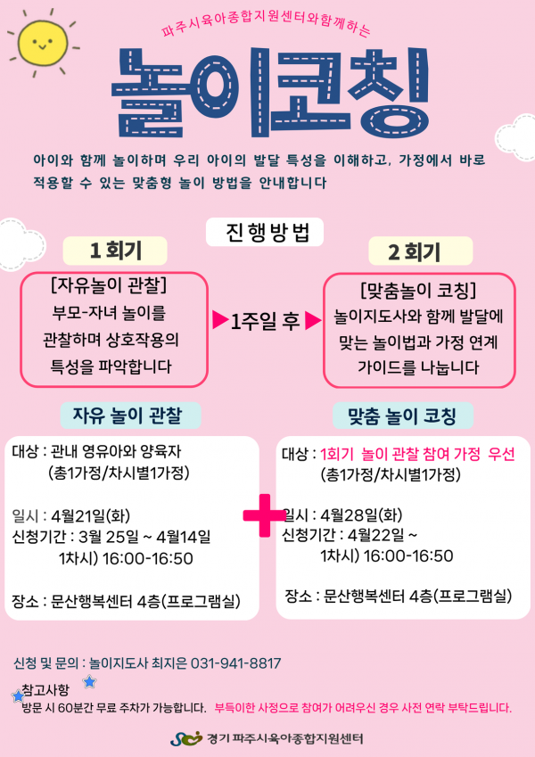 | 장소 | 문산행복센터 4층 프로그램실(구 아이사랑놀이터) | 대상 | 관내 영유아와 부모 (12개월이상~미취학) |