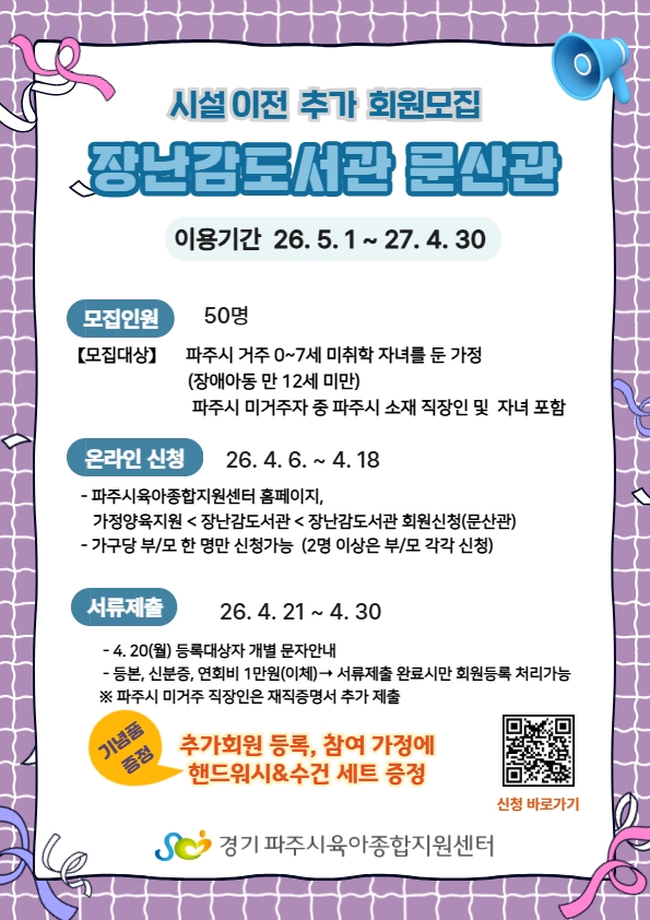 대상 파주시 거주 0~7세 미취학 자녀를 둔 가정 및 파주시 소재 직장인