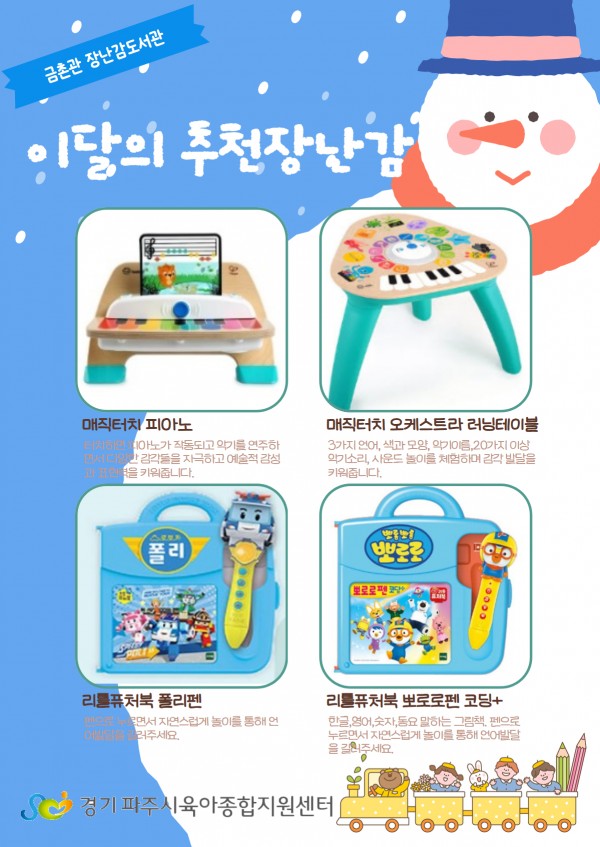 [금촌관] 이달의 추천장난감 - 12월 페이지 정보 작성자 관리자 댓글 0건 조회 14회 작성일 25-12-03 10:27 목록 본문 . 다음글[운정관] 이달의 추천장난감 - 12월 25.12.02
