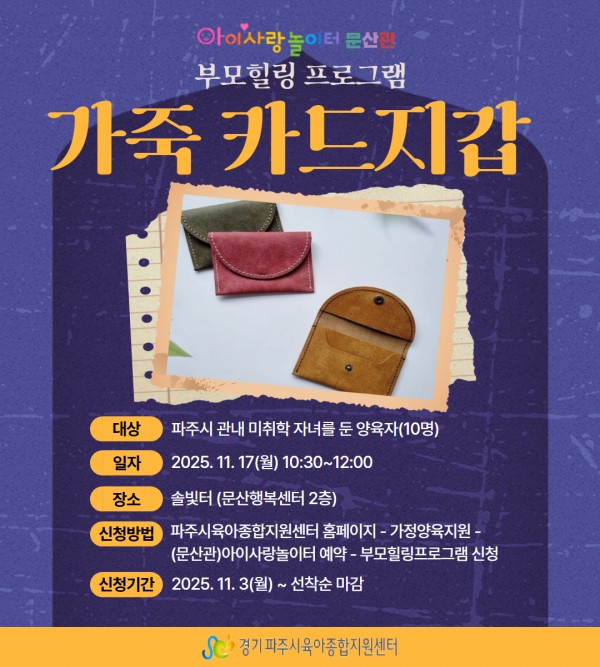 장소 | 문산행복센터 2층(솔빛터) | 대상 | 파주시 관내 영유아를 양육하는 양육자 |