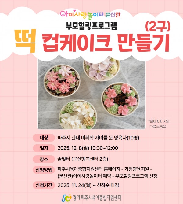 | 장소 | 문산행복센터 2층(솔빛터) | 대상 | 파주시 관내 영유아를 양육하는 양육자 |