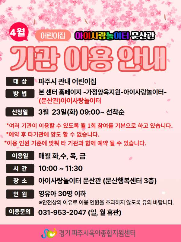 | 장소 | 문산행복센터 3층 | 대상 | 파주시 관내 어린이집 |
