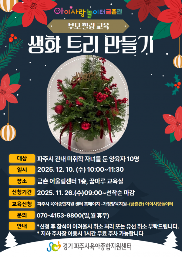 | 장소 | 금촌어울림센터 1층, 꿈마루 교육실 | 대상 | 파주시 거주 미취학 저녀를 양육하는 양육자 |