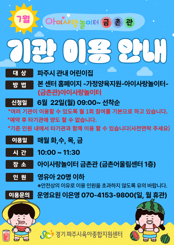 | 장소 | 금촌어울림센터 1층(금정로 45) | 대상 | 파주시 관내 어린이집 |