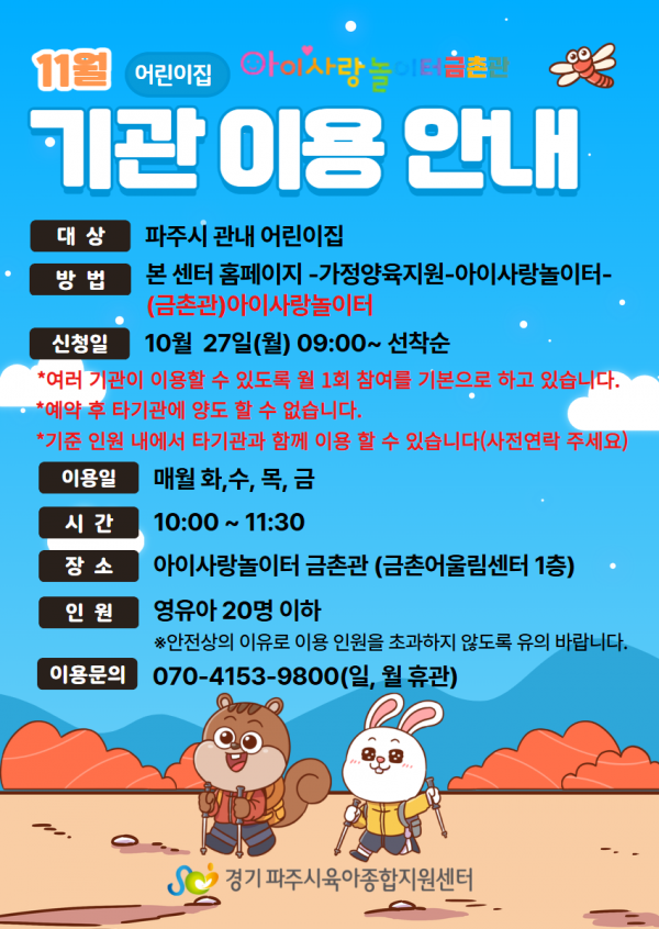 | 장소 | 금촌어울림센터 1층(금정로 45) | 대상 | 파주시 관내 어린이집 |