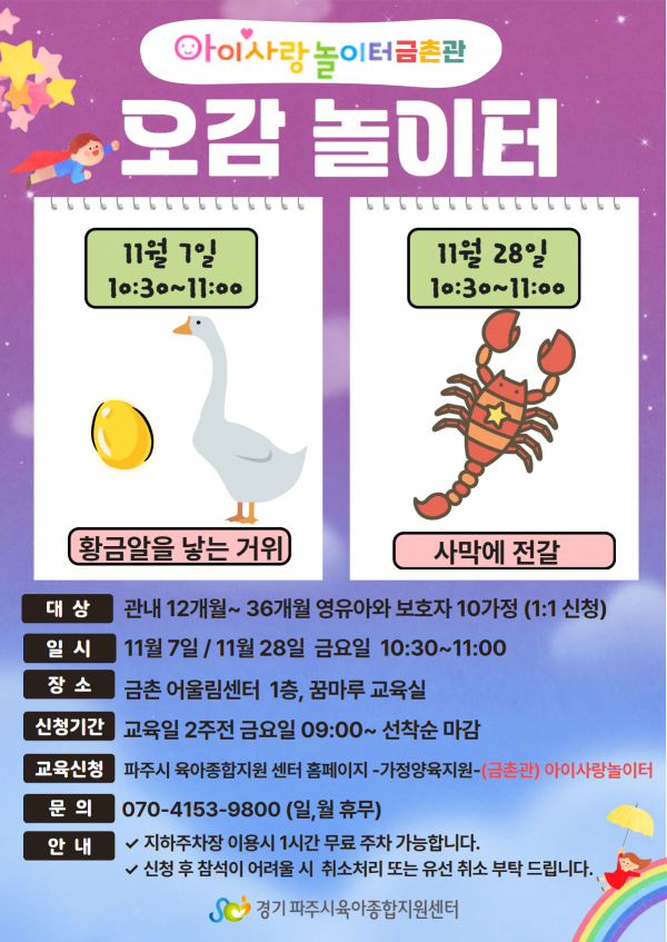 ▷ 문의 : 아이사랑놀이터(금촌관)