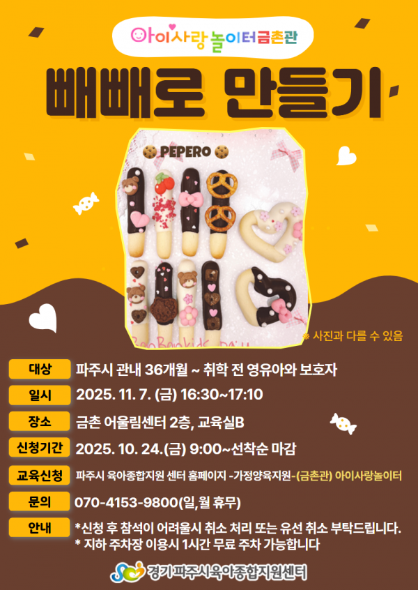| 장소 | 금촌어울림센터 2층, 교육실B | 대상 | 파주시 거주 36개월~취학 전 영유아와 보호 |