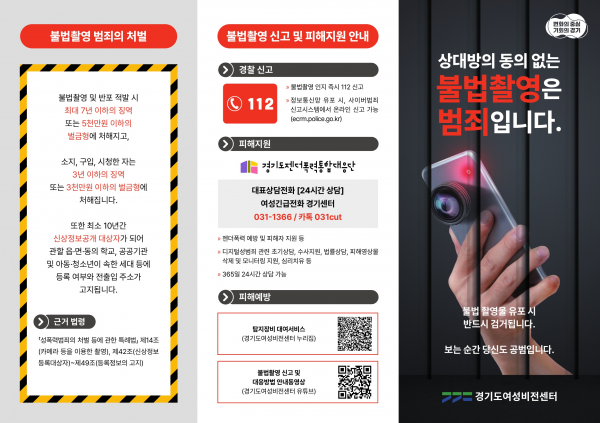 파주시 [경기도여성비전센터] 불법 촬영 피해 예방 및 피해 지원 안내 페이지 정보 작성자 관리자 댓글 0건 조회 17회 작성일 26-02-10 09:22 목록 본문 대표상담전화[24시간 상담]여성긴급전화 경기센터031-1366 / 카톡 031cut 다음글[파주시육아종합지원센터] 경기도영유아발달지원서비스 안내 26.02.06