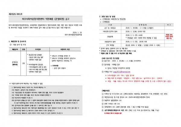 붙임1. 2026년 파주시육아종합지원센터 직원 채용-운영요원 공고문.pdf (98.2K)