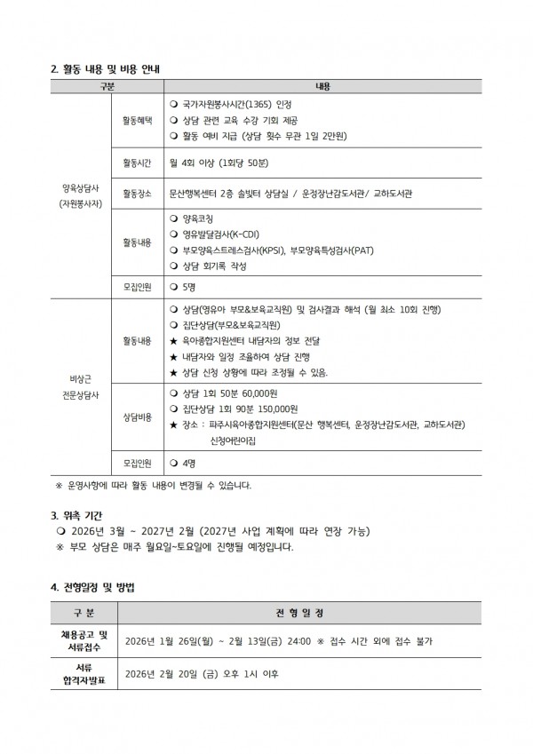 [공고 2026-002호] 파주시육아종합지원센터 비상근 상담사 모집 공고